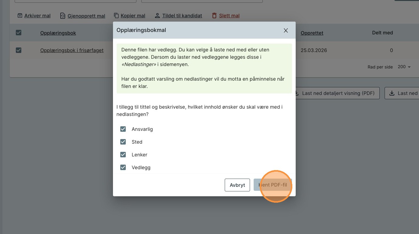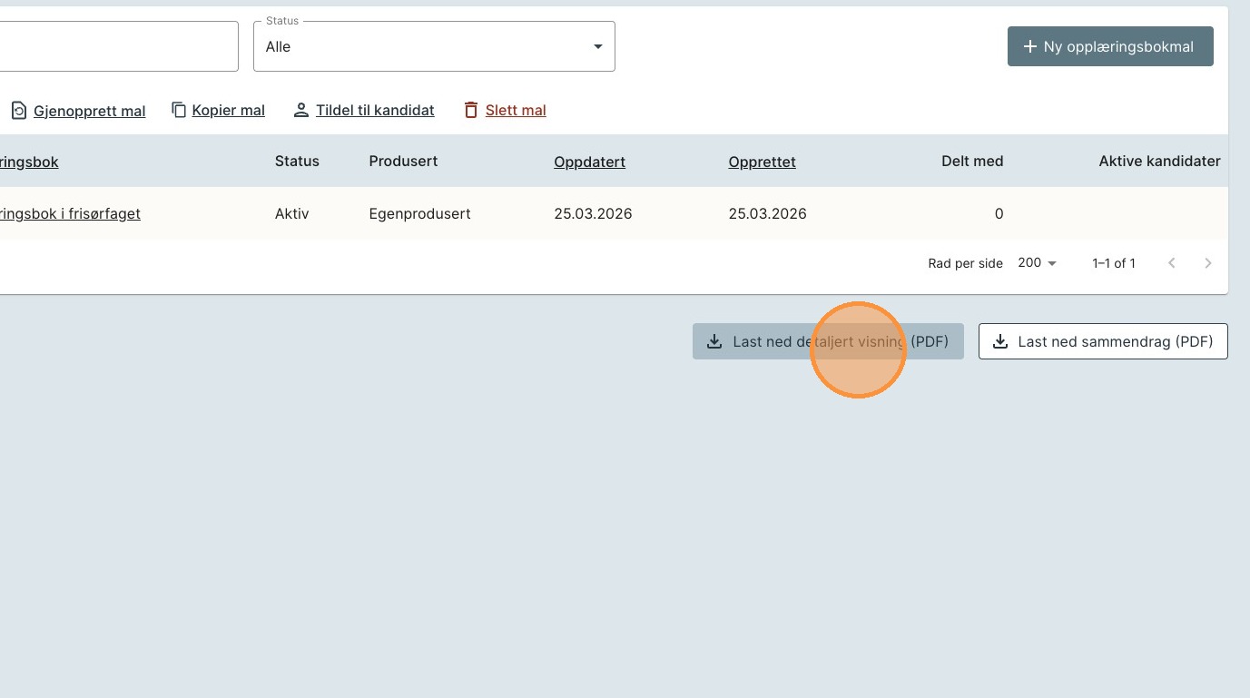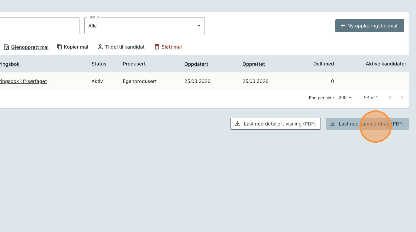 7. For å laste ned et sammendrag av opplæringsbokmalen(e) trykk på knappen «Hent sammendrag (PDF)».
