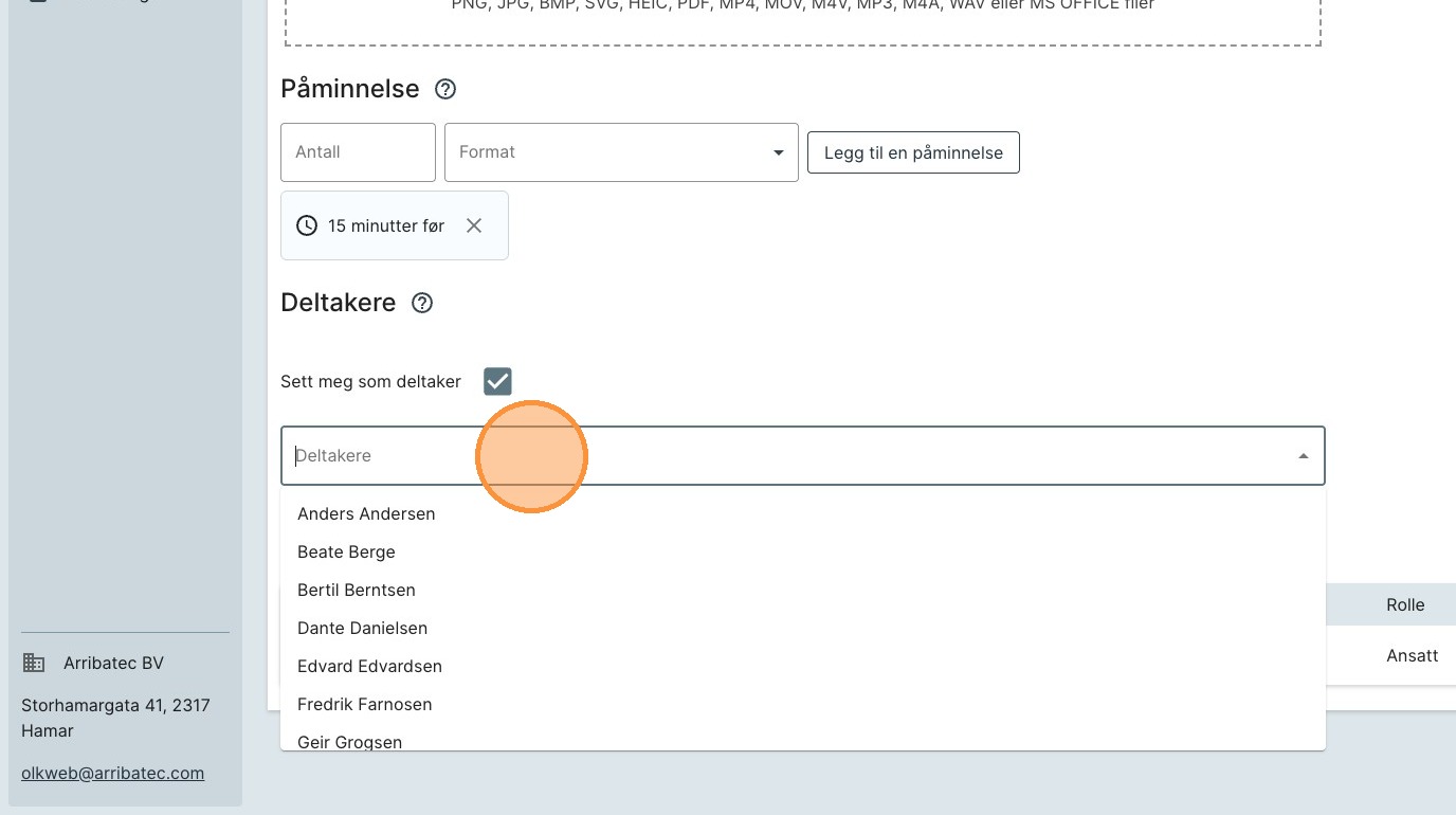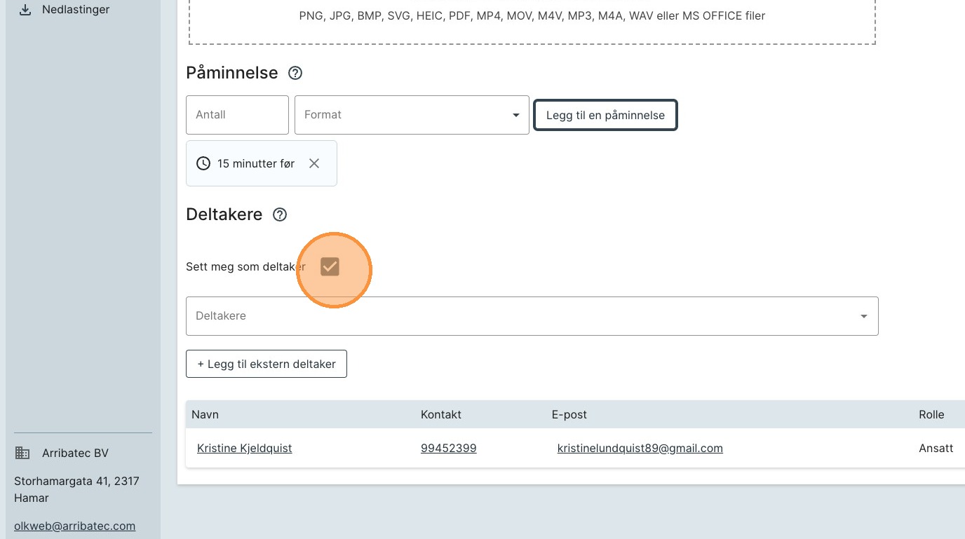 9. Hvis du skal være deltaker, se til at «Sett meg som deltaker» er valgt.