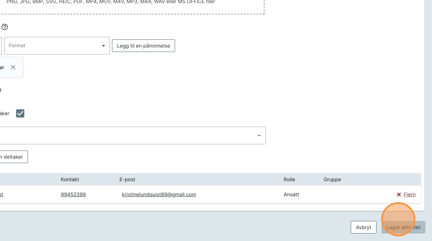 11. Når du er ferdig, trykk på knappen «Lagre aktivitet»