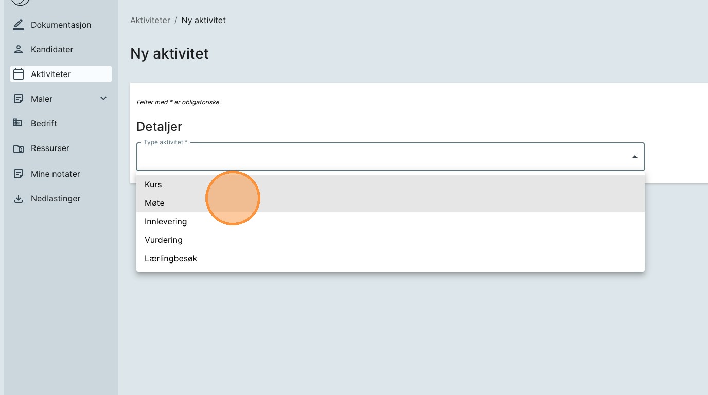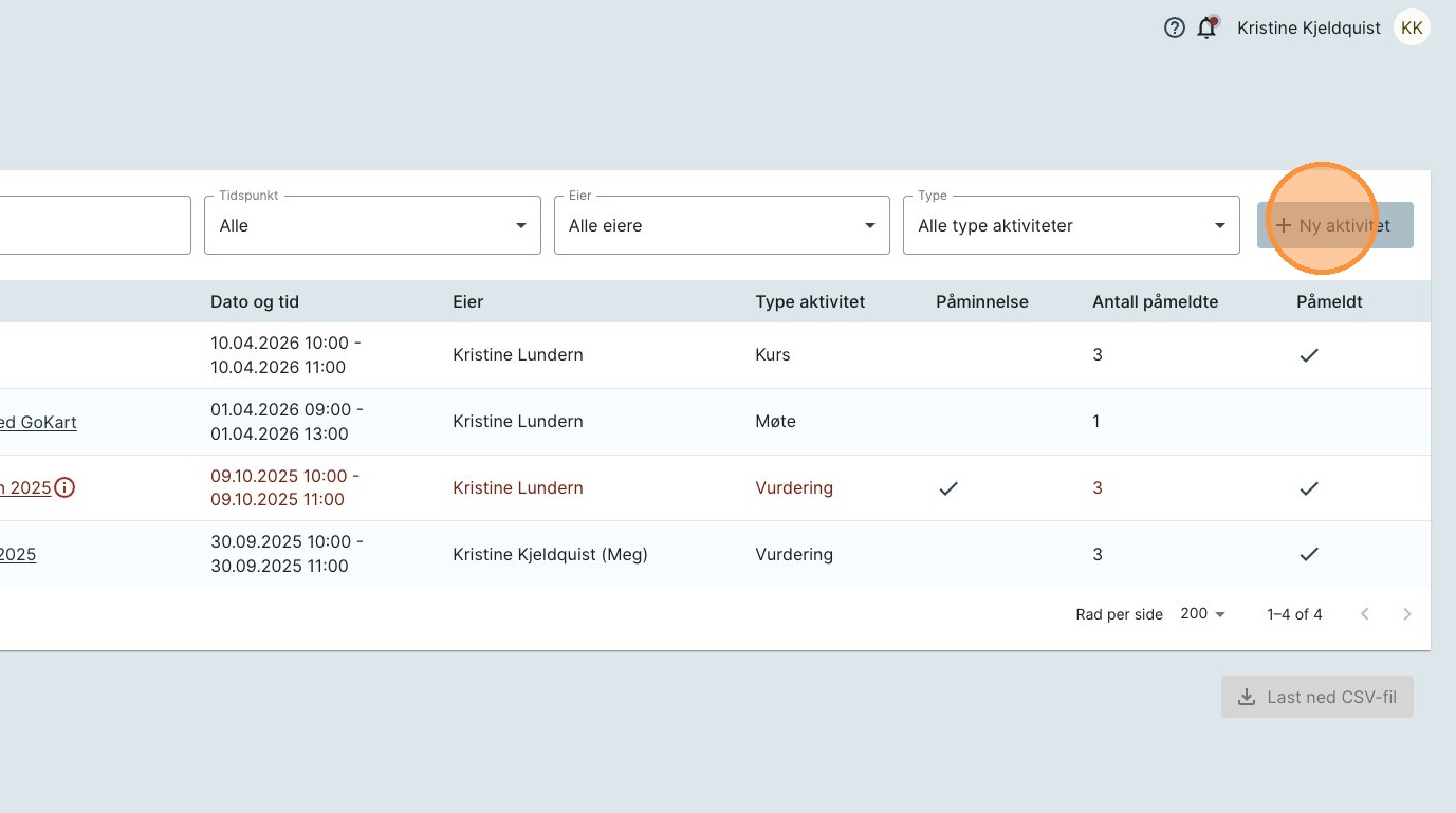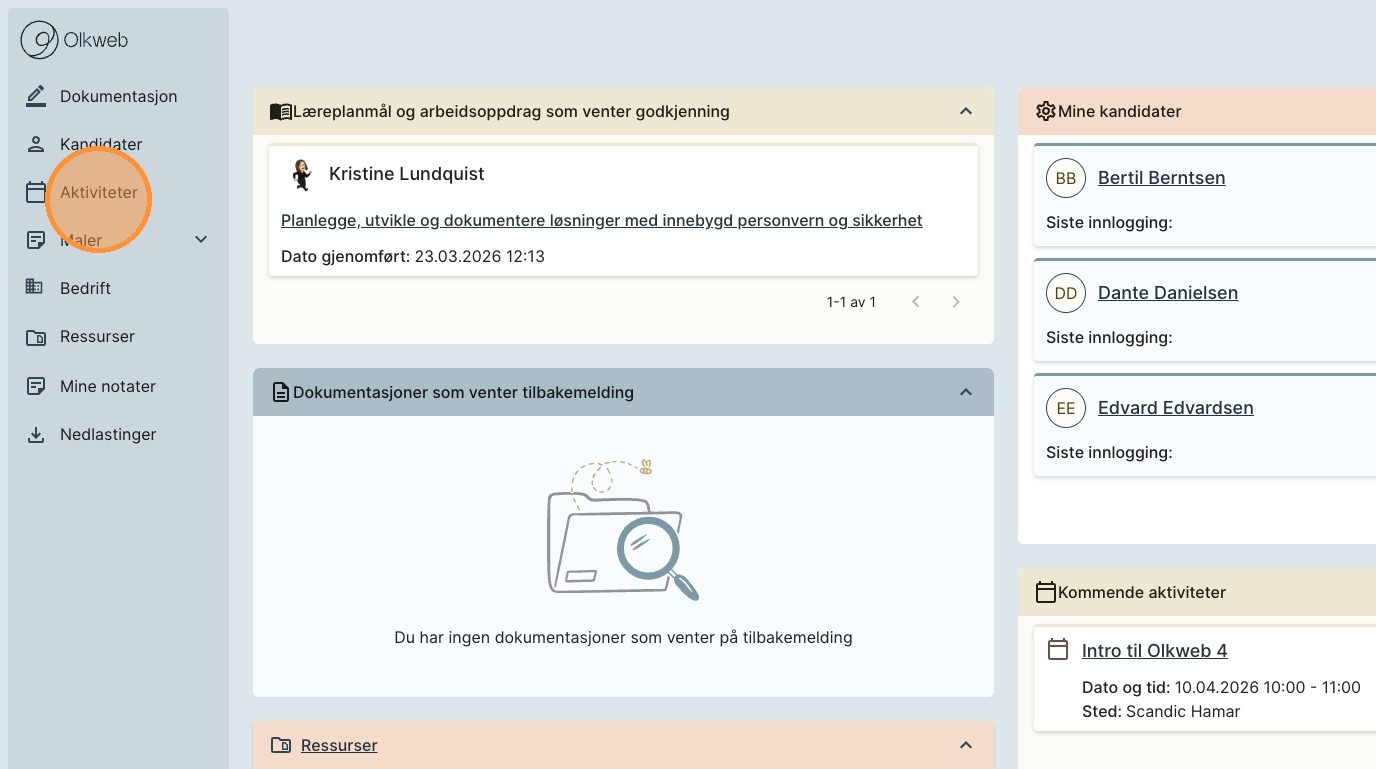 1. Trykk på «Aktiviteter» i venstremenyen.