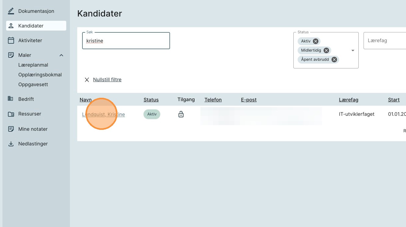 1. Trykk på «Kandidater» i venstremenyen.