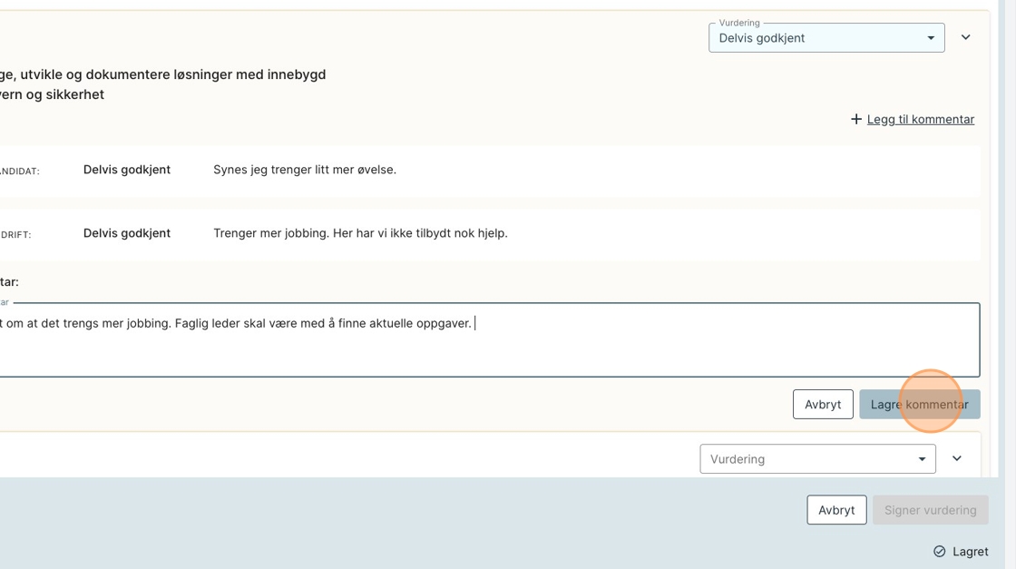 7. Skriv inn i kommentar-feltet og trykk på knappen «Lagre kommentar».