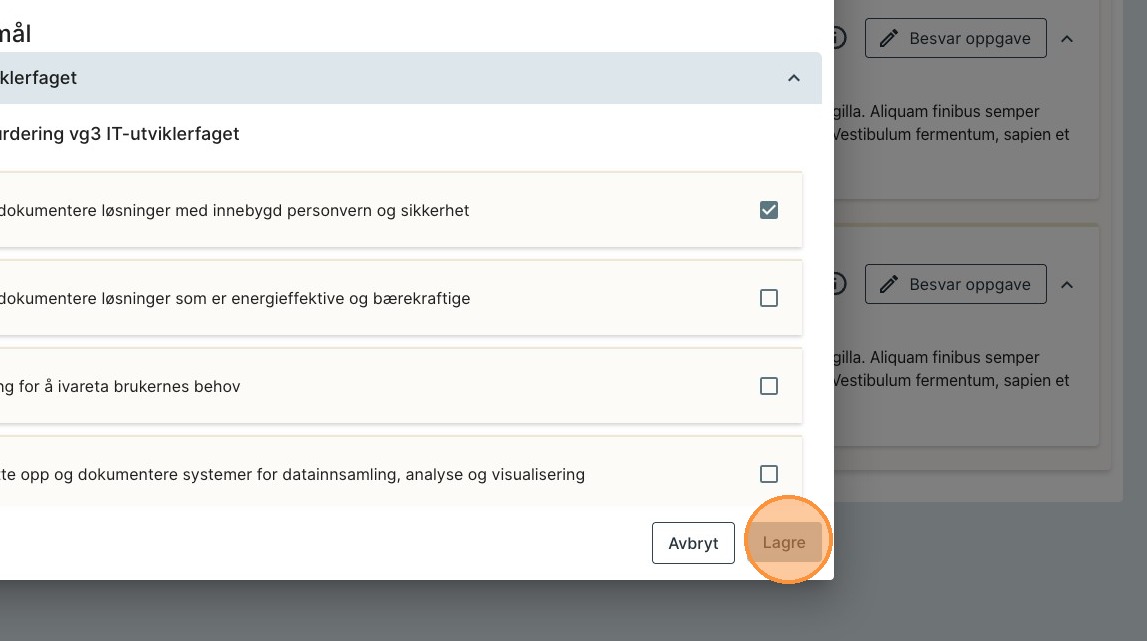 Obs: Legg merke til at du må gjøre dette for alle oppgavene du har fått.