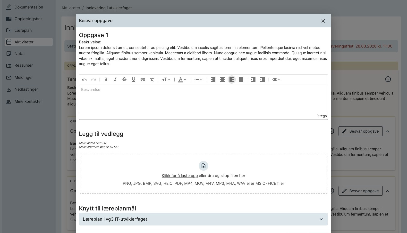 3. Skriv besvarelsen og legg eventuelt med vedlegg hvis ønskelig.