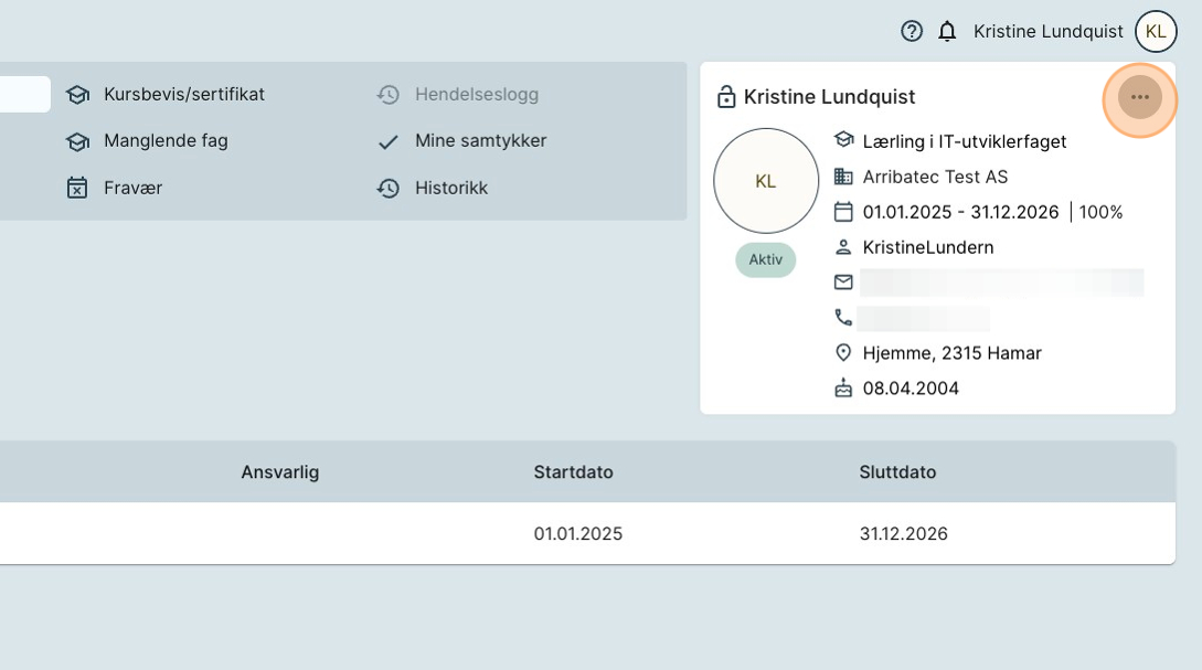 4. Trykk på knappen «Rediger personalia».
