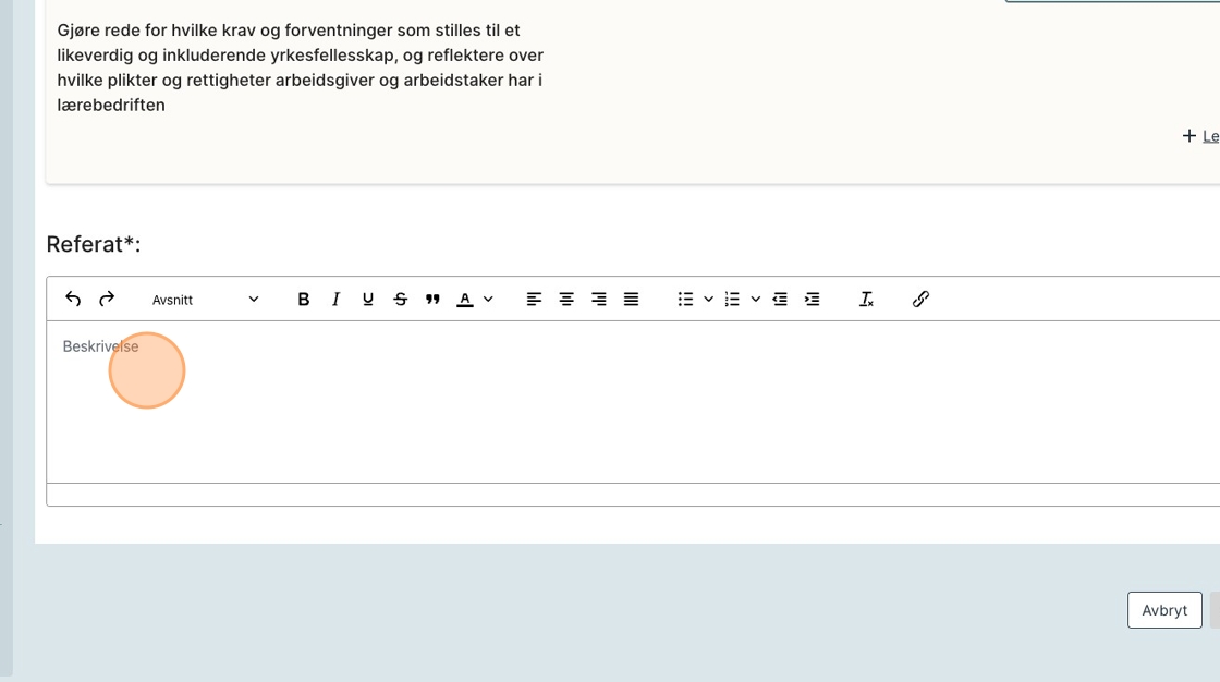 9. Når du har skrevet ferdig referatet, klikk uten for tekstfeltet.